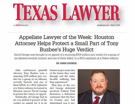David George is a board-certified appellate lawyer in Houston, Texas. He has practiced law for over 25 years and has been board certified as an appellate specialist since 2005. He has orally argued over 40 appeals, winning appeals at the United States Supreme Court and Texas Supreme Court.