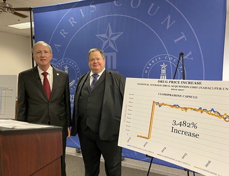 Vince Ryan, former Harris County Attorney, and David George, announcing Harris County’s